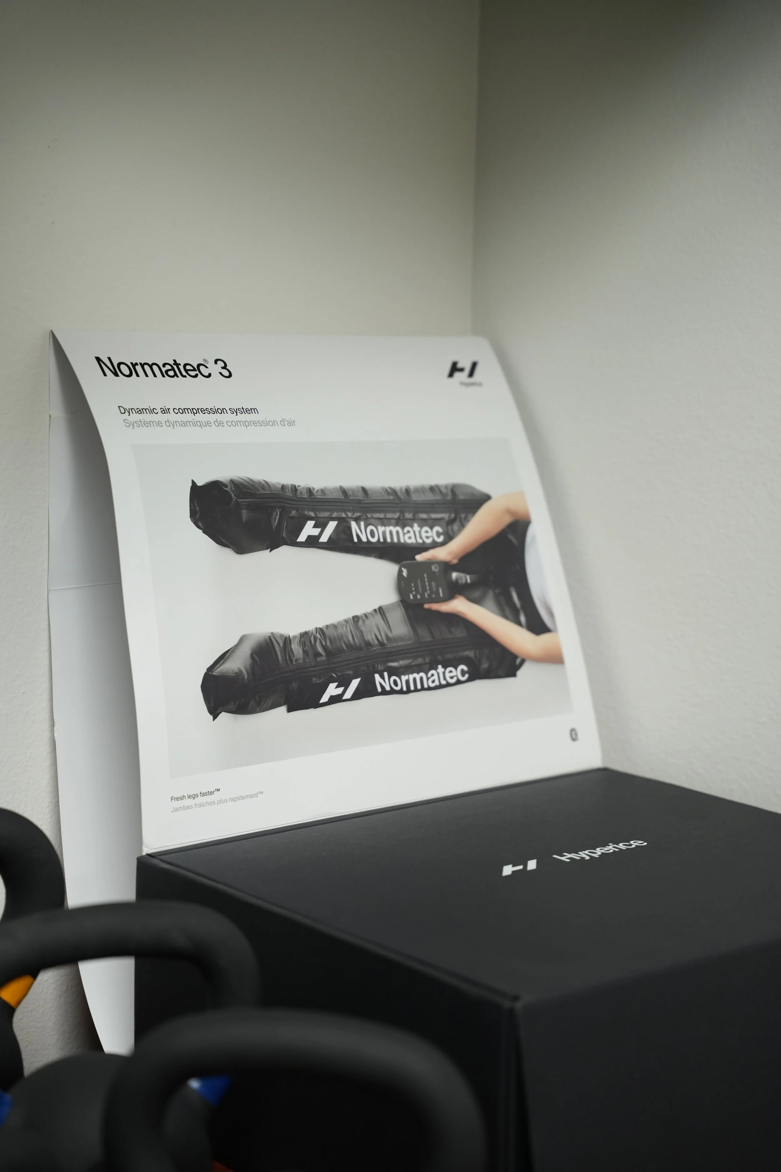 The Normatec 3 by Hyperice is a clinical-grade pneumatic compression system. You slide into leg (or hip or arm) attachments, and the system uses sequential, pulsing air pressure to move fluid through your limbs — mimicking and amplifying what your circulatory and lymphatic systems do naturally, just faster and more thoroughly.